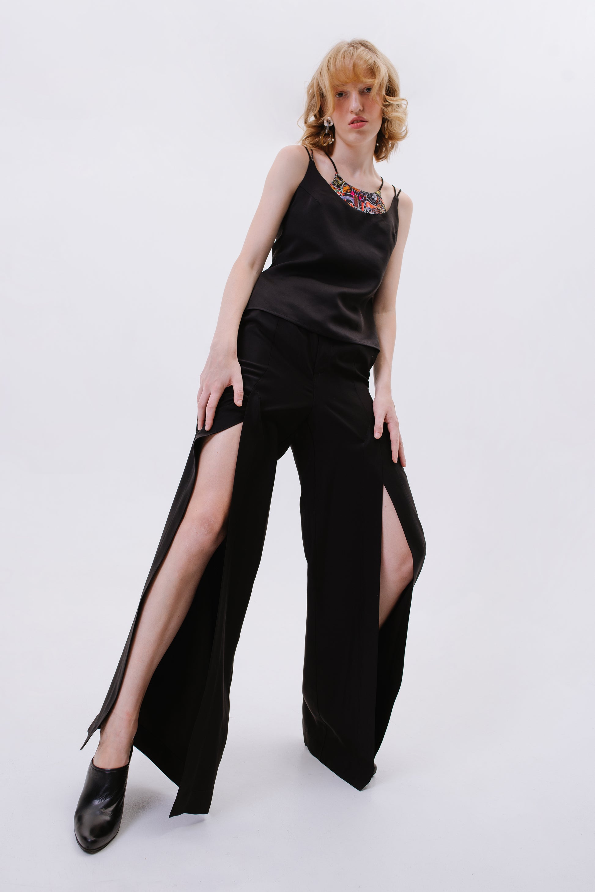 Here your perfect black trousers is made from 64% silk, 34% viscose.