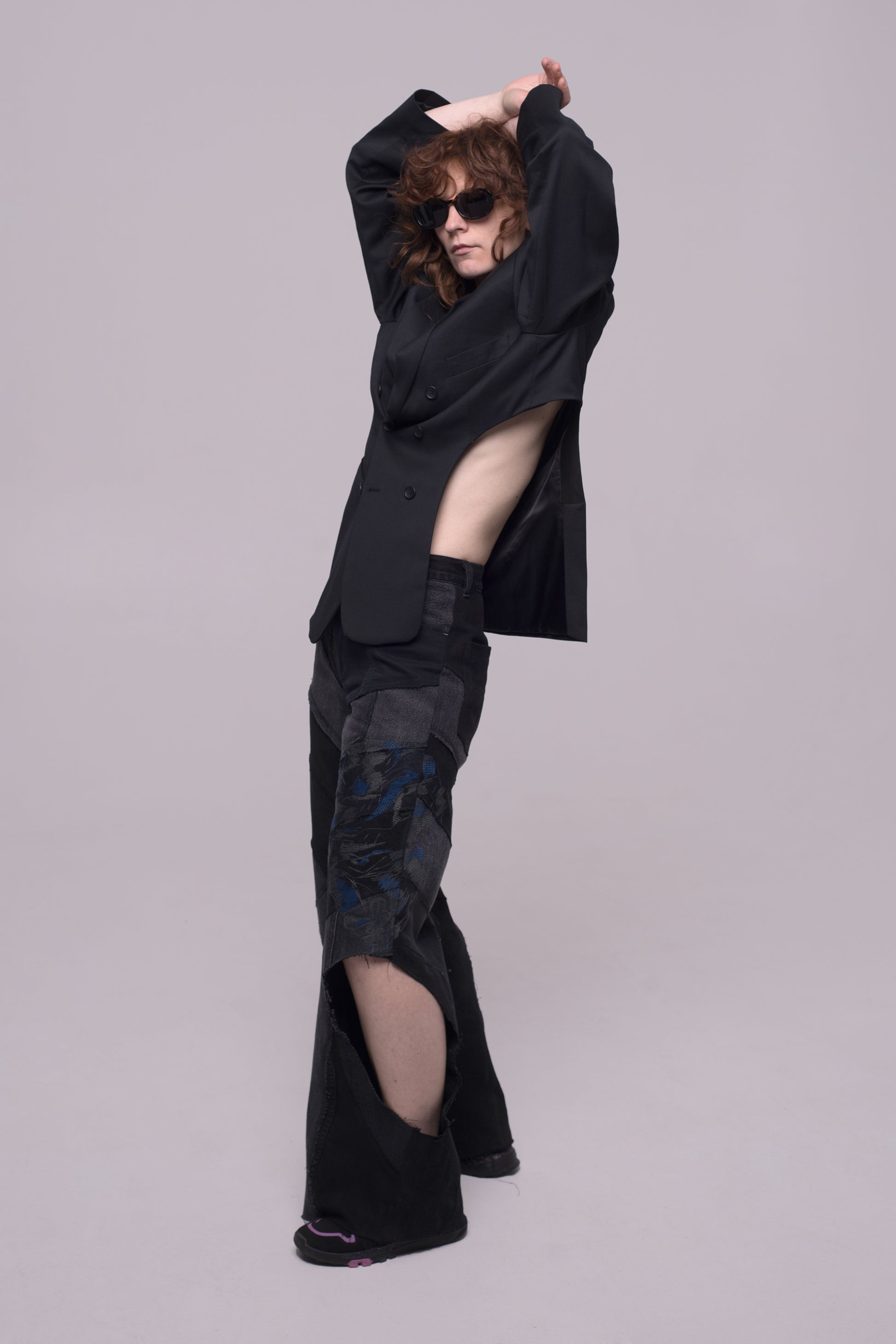 Oversized design. Double-breasted. Button fastenings through the front. The pockets, the shape of the collar, and tiny details can be slightly different, as each upcycle jacket is unique. We can assure you that the end result will be 90% close to the image you see.