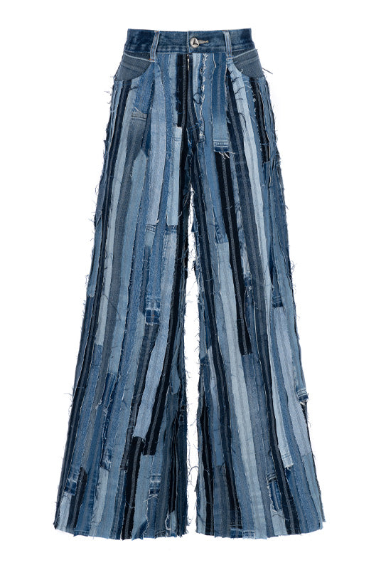These are unique patchwork jeans which combine great with tops , shirts, jackets and make every look special. You can create contrasting looks as with formal wear style, as combine with more casual wear for a street style.