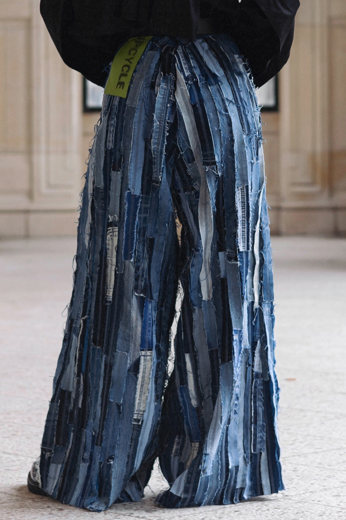 Our Upcycle Jeans are not only made in a patchwork technique to minimize production waste, but they are also crafted from second-hand jeans. We carefully select and acquire pre-owned denim, thoroughly wash and revitalize it, and skillfully cut off any damaged or unusable parts. By creatively transforming these reclaimed materials, we give them new life as unique and sustainable jeans. Each pair of our Upcycle Jeans maintains 100% consistency in style and fit. However, due to the nature of the patchwork process, the combination of patchwork pieces may vary slightly from one pair to another. This individuality adds to the charm and story of each pair, ensuring that your jeans are truly one-of-a-kind. Join us in our mission to reduce waste and embrace the beauty of upcycled fashion with our Upcycle Jeans. Each pair carries its own unique narrative, blending sustainability, style, and the art of creative reinvention.