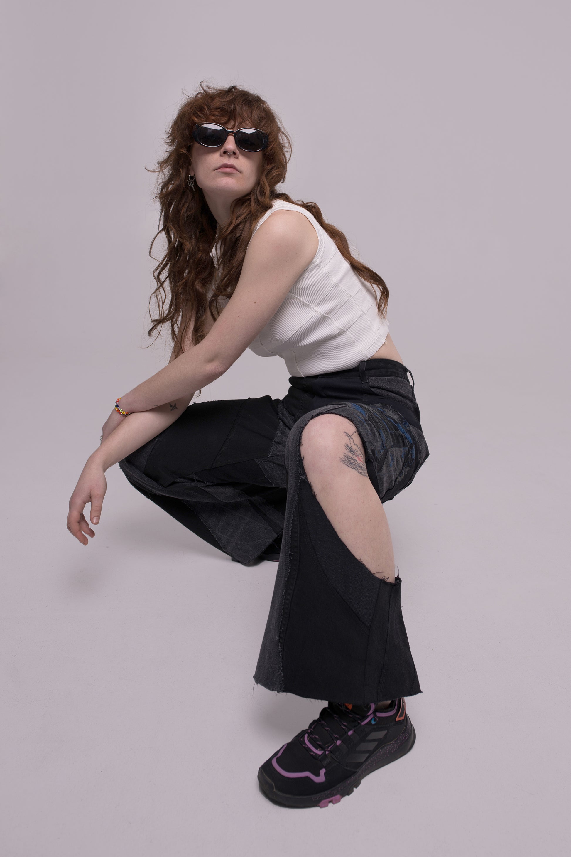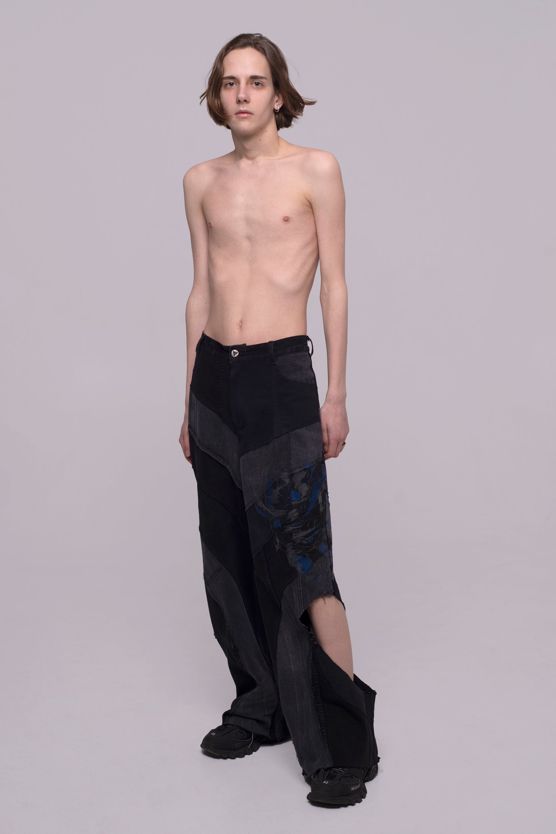 These are unique patchwork jeans which combine great with tops , shirts, jackets and make every look special. You can create contrasting looks as with formal wear style, as combine with more casual wear for a street style.
