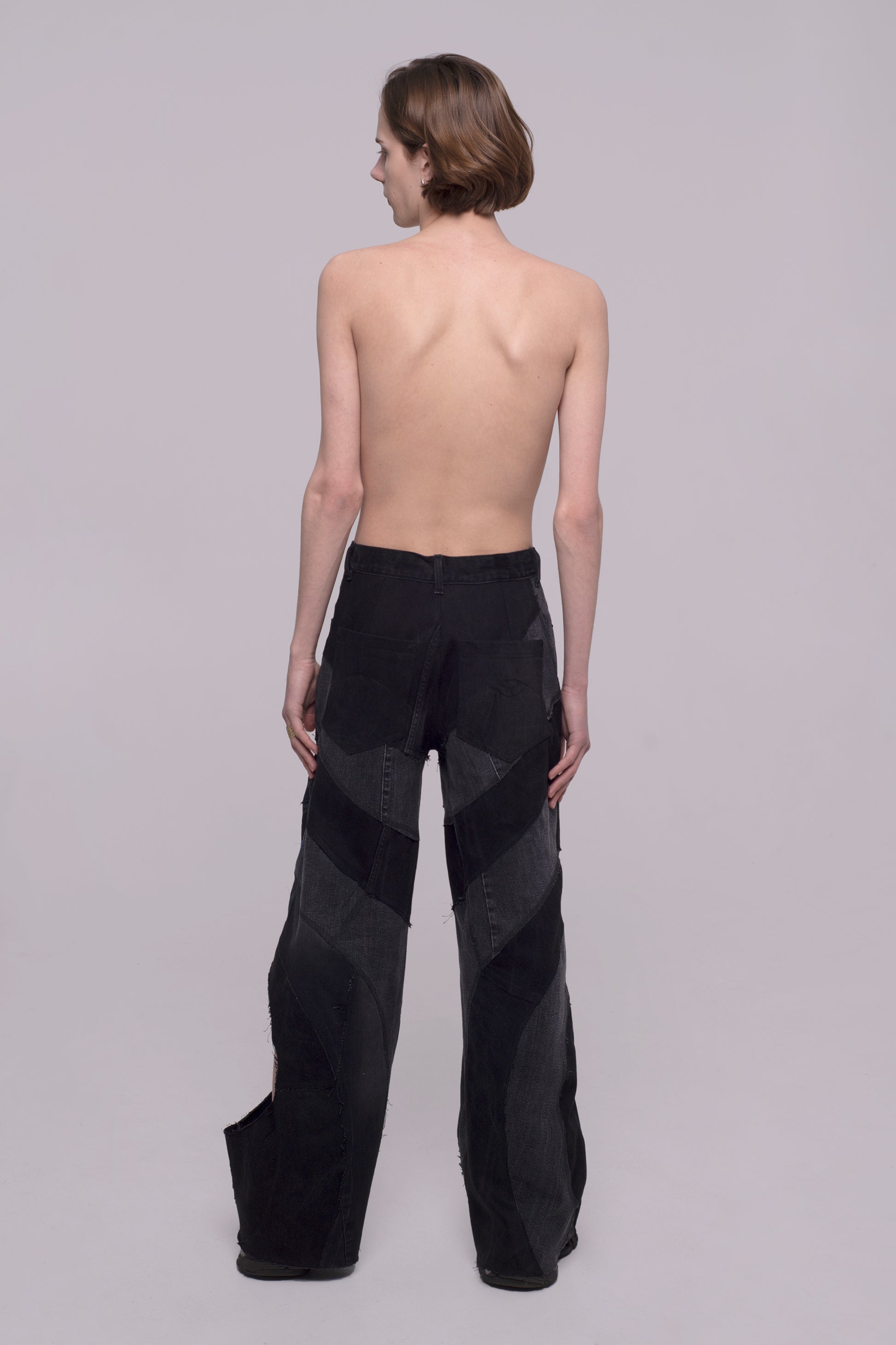 Our Black Upcycle Jeans are not only made in a patchwork technique to minimize production waste, but they are also crafted from second-hand jeans. We carefully select and acquire pre-owned denim, thoroughly wash and revitalize it, and skillfully cut off any damaged or unusable parts. By creatively transforming these reclaimed materials, we give them new life as unique and sustainable jeans. Each pair of our Black Upcycle Jeans maintains 100% consistency in style and fit. However, due to the nature of the patchwork process, the combination of patchwork pieces may vary slightly from one pair to another. This individuality adds to the charm and story of each pair, ensuring that your jeans are truly one-of-a-kind. Join us in our mission to reduce waste and embrace the beauty of upcycled fashion with our Black Upcycle Jeans. Each pair carries its own unique narrative, blending sustainability, style, and the art of creative reinvention.