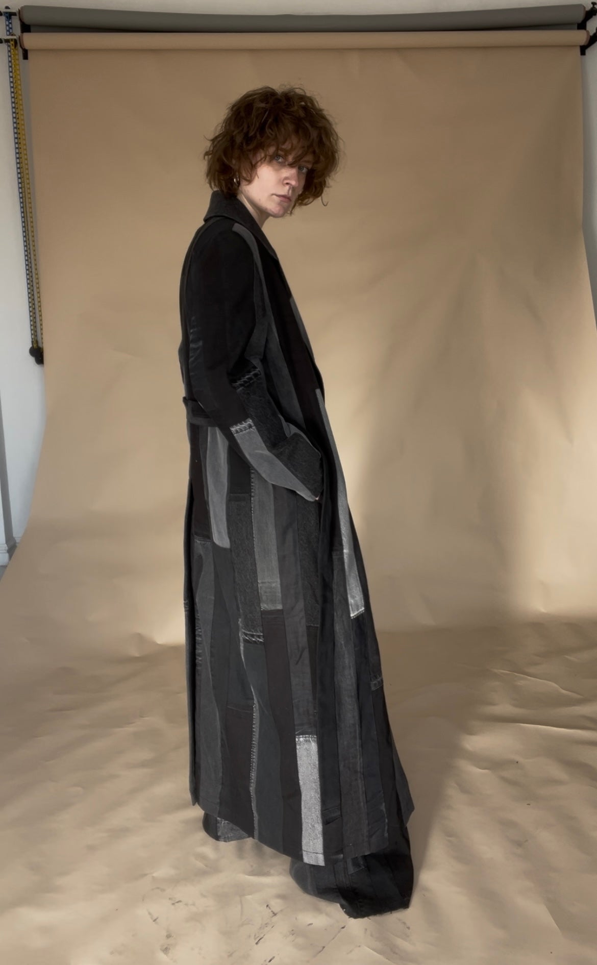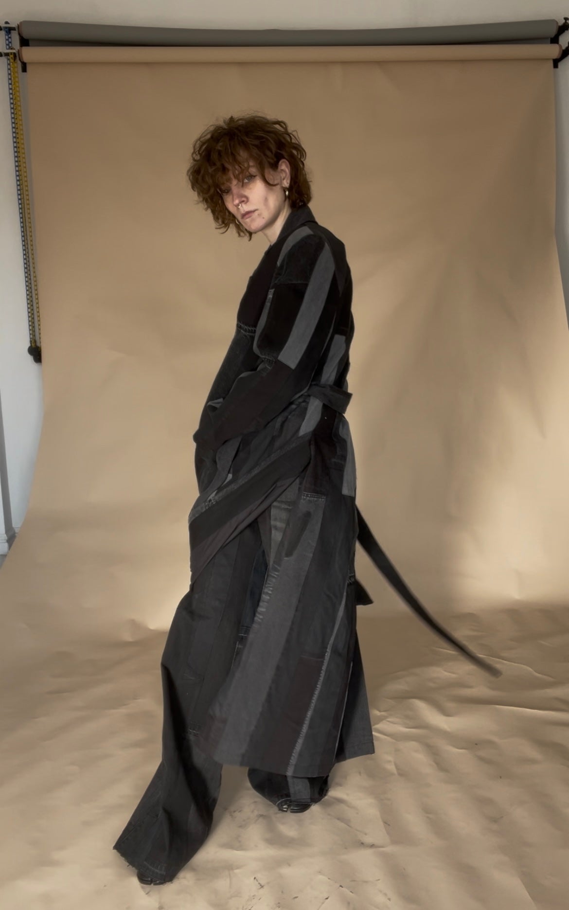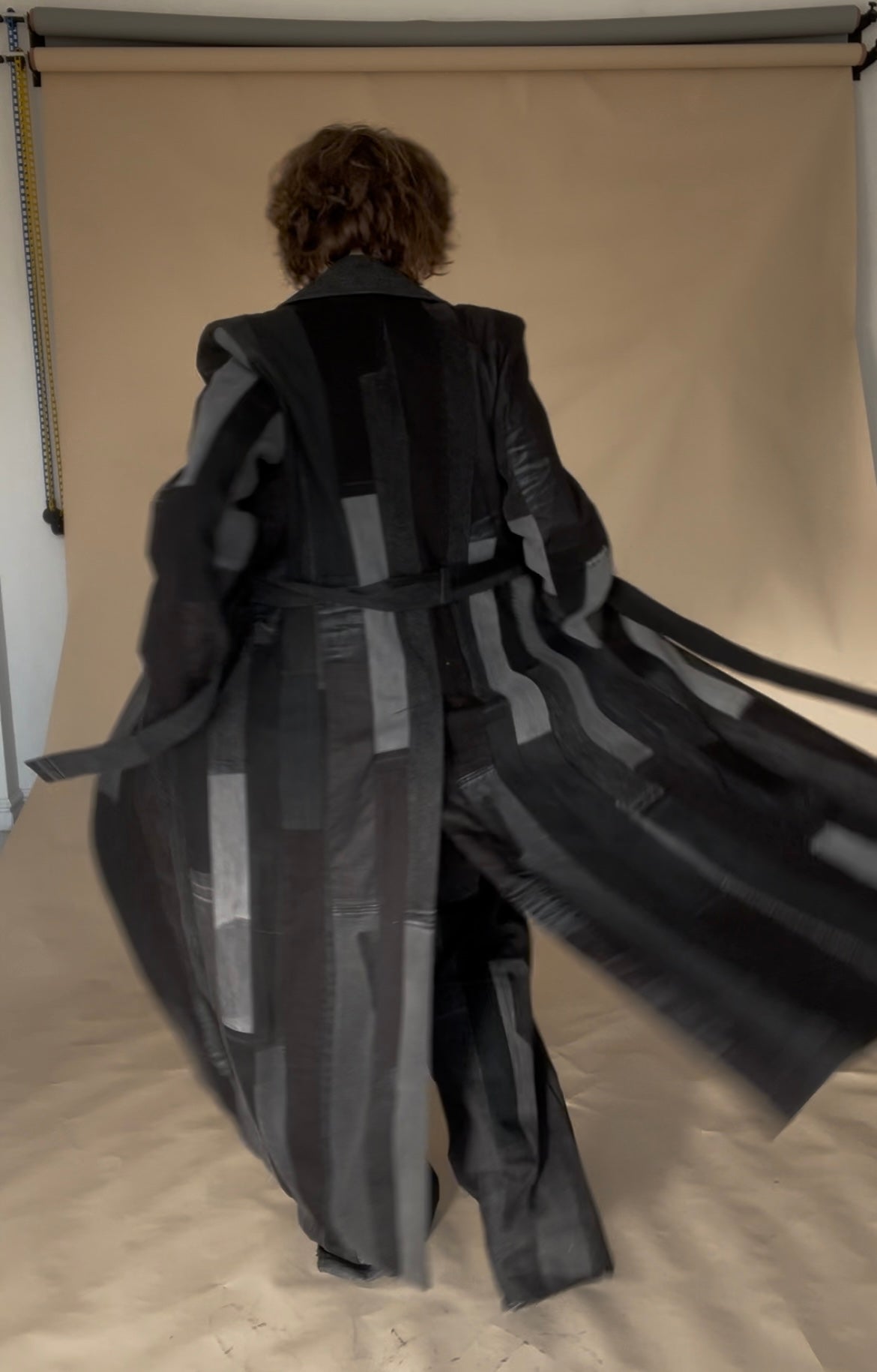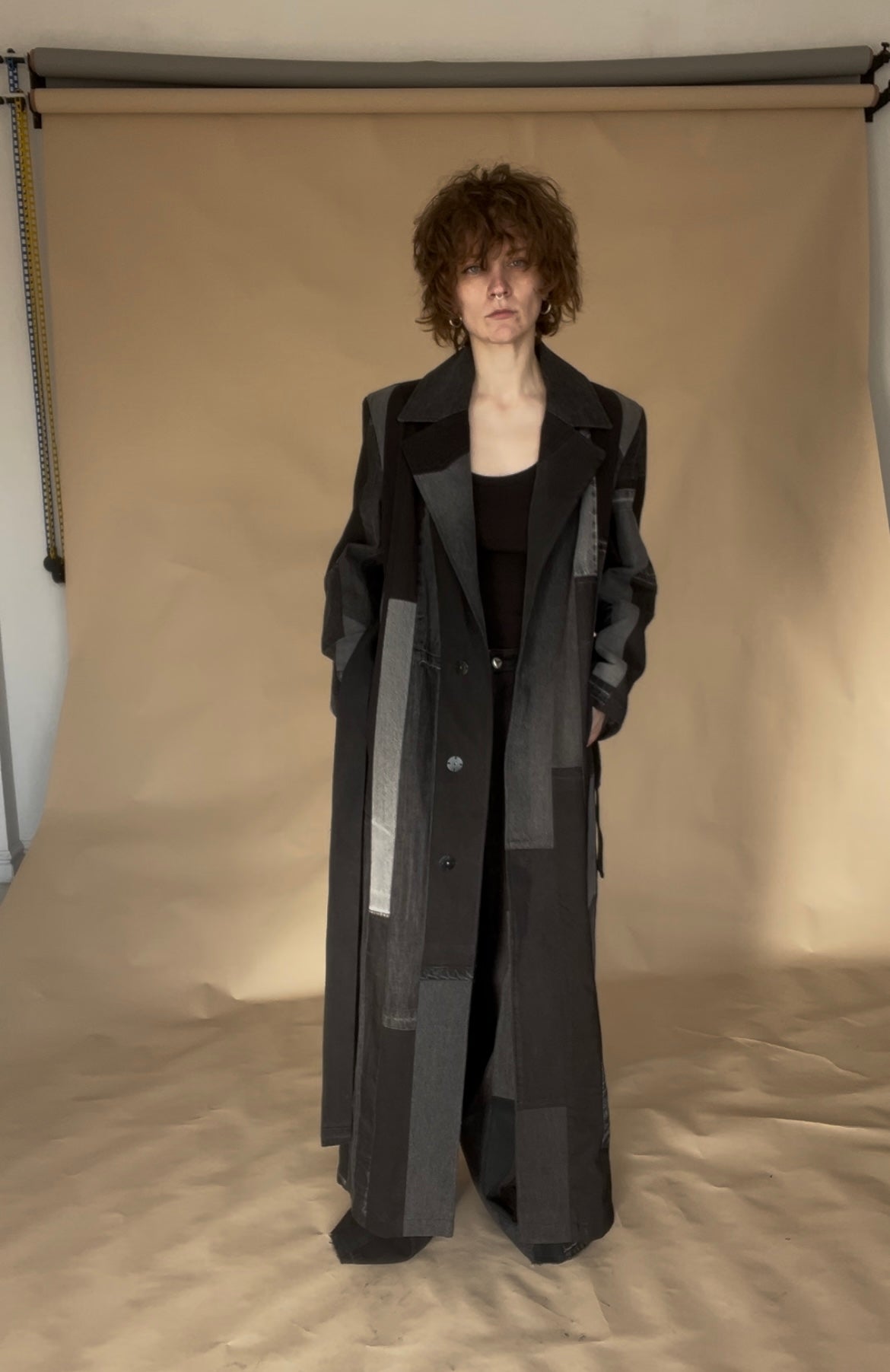 Our Upcycle Trench are not only made in a patchwork technique to minimize production waste, but they are also crafted from second-hand jeans. We carefully select and acquire pre-owned denim, thoroughly wash and revitalize it, and skillfully cut off any damaged or unusable parts. By creatively transforming these reclaimed materials, we give them new life as unique and sustainable trench. Each our Upcycle Trench maintains 100% consistency in style and fit. However, due to the nature of the patchwork process, the combination of patchwork pieces may vary slightly from one pair to another. This individuality adds to the charm and story of each trench, ensuring that your trench are truly one-of-a-kind. Join us in our mission to reduce waste and embrace the beauty of upcycled fashion with our Upcycle Ttench. Each trench carries its own unique narrative, blending sustainability, style, and the art of creative reinvention.