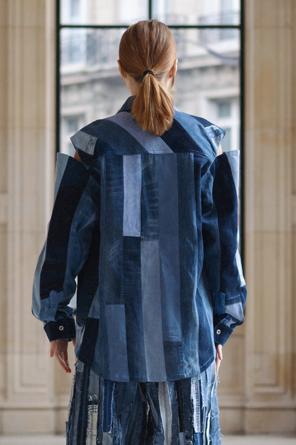 Our Upcycle Shirt are not only made in a patchwork technique to minimize production waste, but they are also crafted from second-hand jeans. We carefully select and acquire pre-owned denim, thoroughly wash and revitalize it, and skillfully cut off any damaged or unusable parts. By creatively transforming these reclaimed materials, we give them new life as unique and sustainable shirt. Each our Upcycle Shirt maintains 100% consistency in style and fit. However, due to the nature of the patchwork process, the combination of patchwork pieces may vary slightly from one pair to another. This individuality adds to the charm and story of each shirt, ensuring that your shirt are truly one-of-a-kind. Join us in our mission to reduce waste and embrace the beauty of upcycled fashion with our Upcycle Shirt. Each shirts carries its own unique narrative, blending sustainability, style, and the art of creative reinvention.